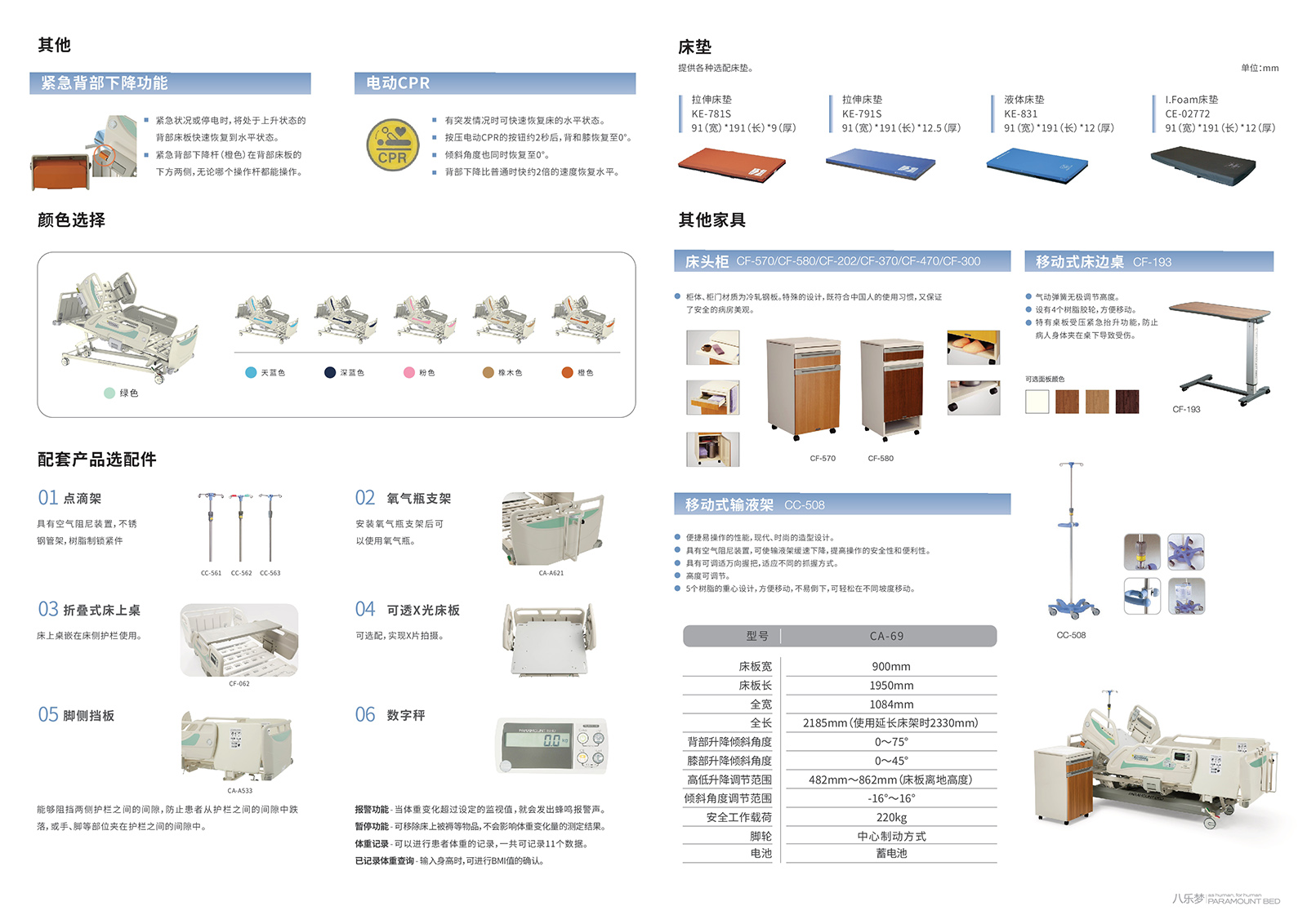 適用范圍:用于醫療監護下的成年患者的診斷、治療或監護時使用,用以支撐患者身體,形成臨床所需體位。